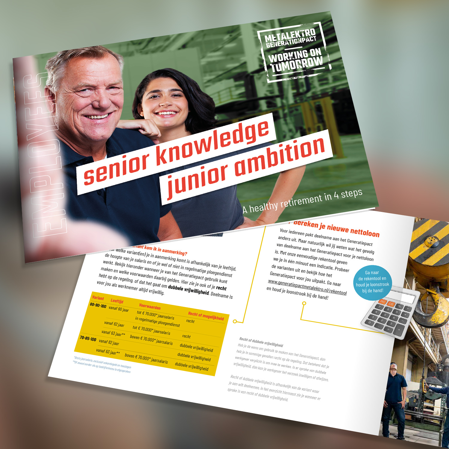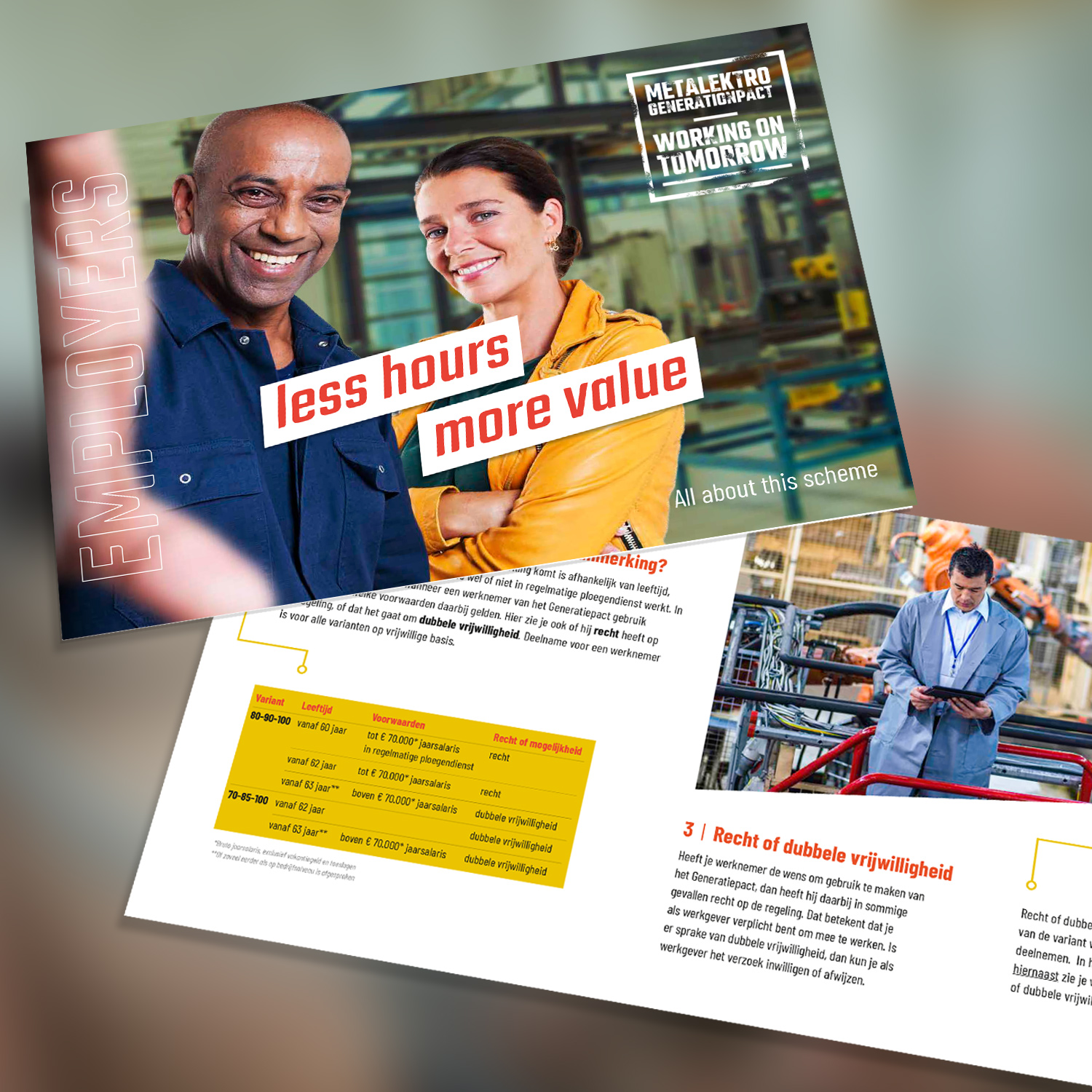 In deze brochure lees je wat het Generatiepact betekent voor werknemers in de Metalektro. Hoe werkt het precies? Welke variant past het beste bij jouw situatie? En welke stappen moet je ondernemen om deel te nemen?
