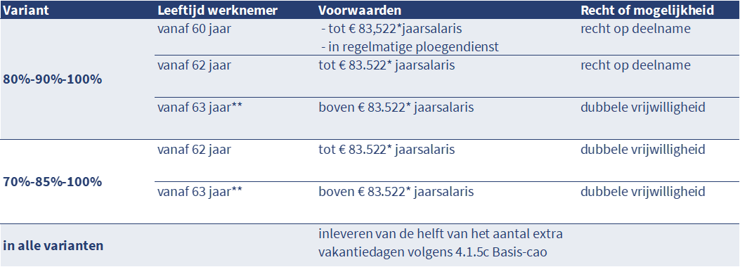 Het hebben van seniorendagen is geen voorwaarde voor deelname. Indien de werknemer geen recht heeft op deze dagen vindt er geen andere verrekening plaats.